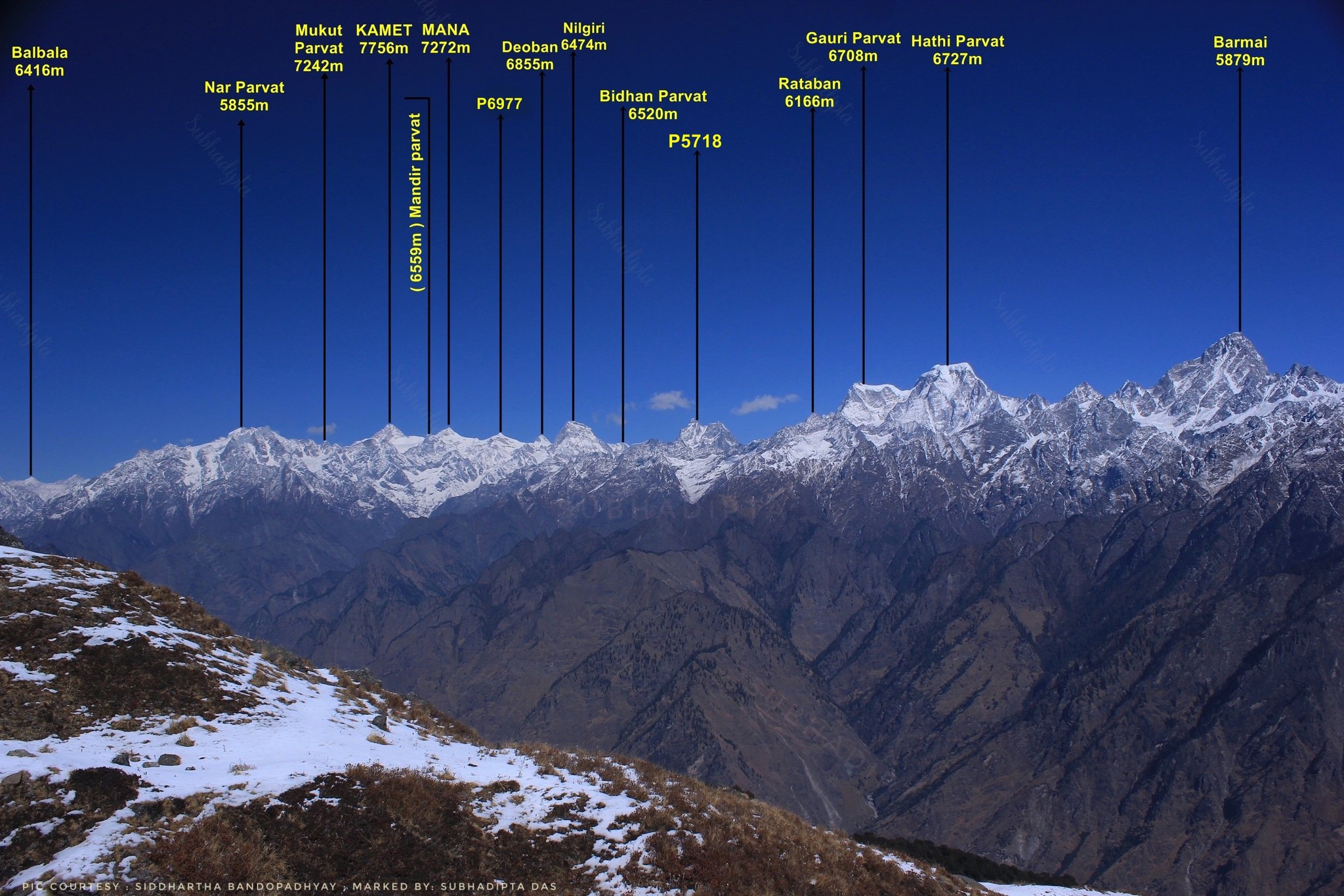 Prominent mountain peaks visible from Kuari Pass | Image Credit: SUBHADIPTA DAS on X. Some other prominent peaks that are not visible in this range include Dronagiri on the far right, and Chaukhamba and Neelkanth on the far left.