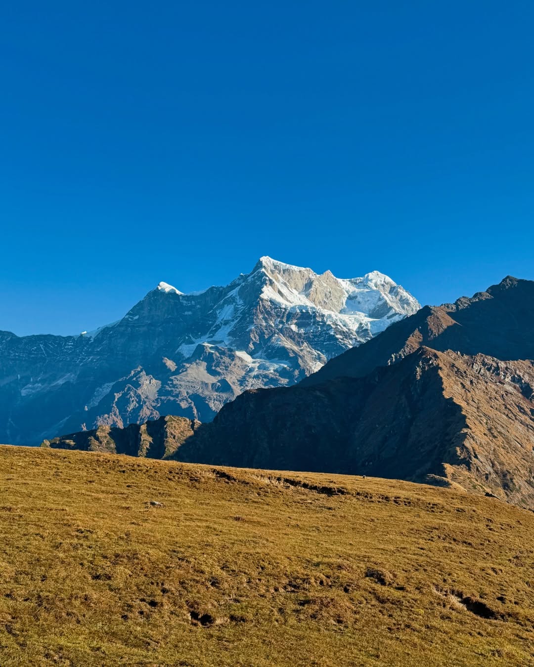 The Madhyamaheswar trek is one of the easiest treks that takes you so close to the Chaukambha Massif. Although the trail barely touches 11,000 feet, trekkers can experience the breathtaking view of the first rays of the sun glistening on the snow-covered Chaukhambha range.